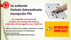 ¡¡Atención IV medios!! Les informamos el nuevo plazo de inscripción de PTU. ¿Tienes dudas o consultas? Comunícate con nuestra orientadora, al mail cdbaezajimenez@colegioantilenrengo.cl #ptu #Educación