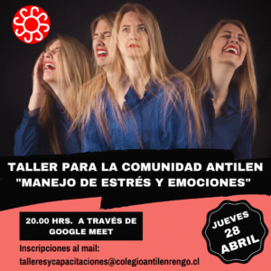 ¡¡Atención Padres y Apoderados!! Los invitamos a participar en el taller “Manejo de Estrés y Emociones” que se realizará mañana a las 20.00 hrs. a