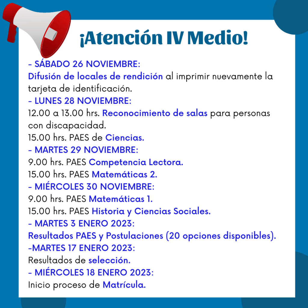 ✳️¡Atención alumnos y alumnas de IV medio!✳️