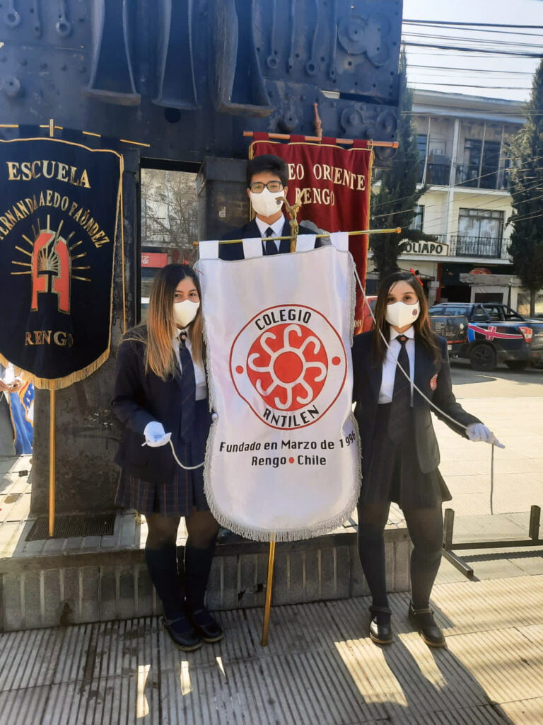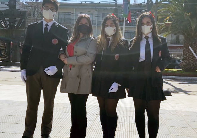 Nuestros estudiantes de IV Medios dando inicio al mes de la Patria y representando a nuestro colegio en el Izamiento del Pabellón Nacional 🇨🇱🇨🇱, actividad celebrada en la Plaza de Armas de nuestra ciudad, el día viernes 02 de septiembre.