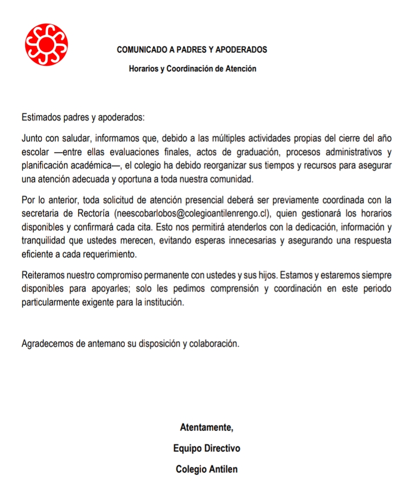 COMUNICADO OFICIAL A PADRES Y APODERADOS