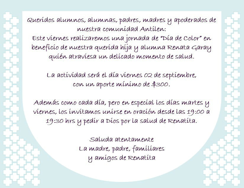 ¡Desde ya agradecemos su solidaridad y oraciones hacia Renatita!