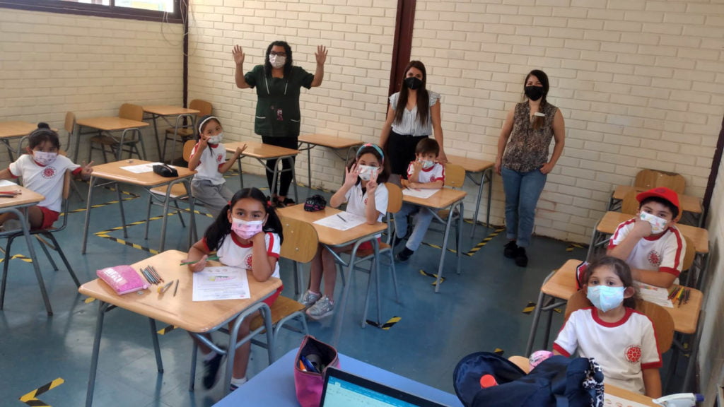 Uno de los cambios más complejos que deben enfrentar los niños en su formación educativa es el paso del Kínder a 1º básico, tema sobre el cual los expertos coinciden en que se hace necesario pensar diferentes estrategias para apoyar una adaptación adecuada, tanto en los colegios como en sus casas. Es por esto que nuestro colegio ha trabajado en distintas áreas con los alumnos de Kinder , quienes el próximo año se verán enfrentados al desafío de cursar 1º básico. Esta semana conocieron su próxima sala de clases y compartieron con sus futuras profesoras de lenguaje.