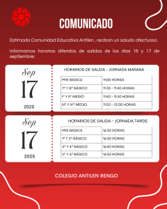 Horarios de salida Martes 16 y Miércoles 17 de Septiembre.