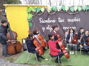 Agradecemos a nuestros estudiantes Srta. Amanda Campos González de 4° Básico C y al Sr . Martín Gaona Calderón de II°Medio C, por su destacada participación en la inauguración del huerto escolar de la Escuela de Villa del Cóbil, ambos pertenecen a la Orquesta Infanto Juvenil Comunal, dirigida por la intérprete de violonchelo Sra. Salomé Bustos, monitora de nuestro establecimiento educacional.