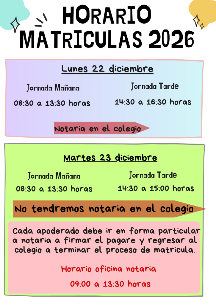 – Horarios matrículas año 2026
