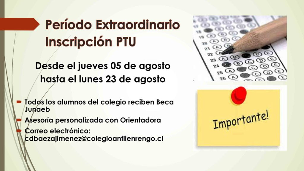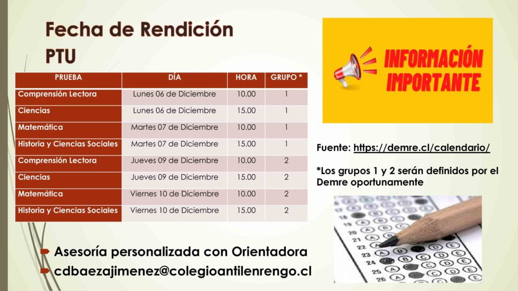 📣. ¡¡Atención alumnos de IV medio a esta importante información acerca de las fechas de inscripción y rendición de PTU!! 📣
