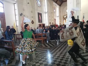 Hoy nuestro colegio participó en la Misa de Solidaridad junto al Obispo Guillermo Vera y sacerdote párroco Pedro Pedraza, destacando los estudiantes portaestandartes y bailarines de nuestro baile nacional. Agradecemos a la profesora de Religión Sra. Gloria Caro, fomentar tan nobles valores.