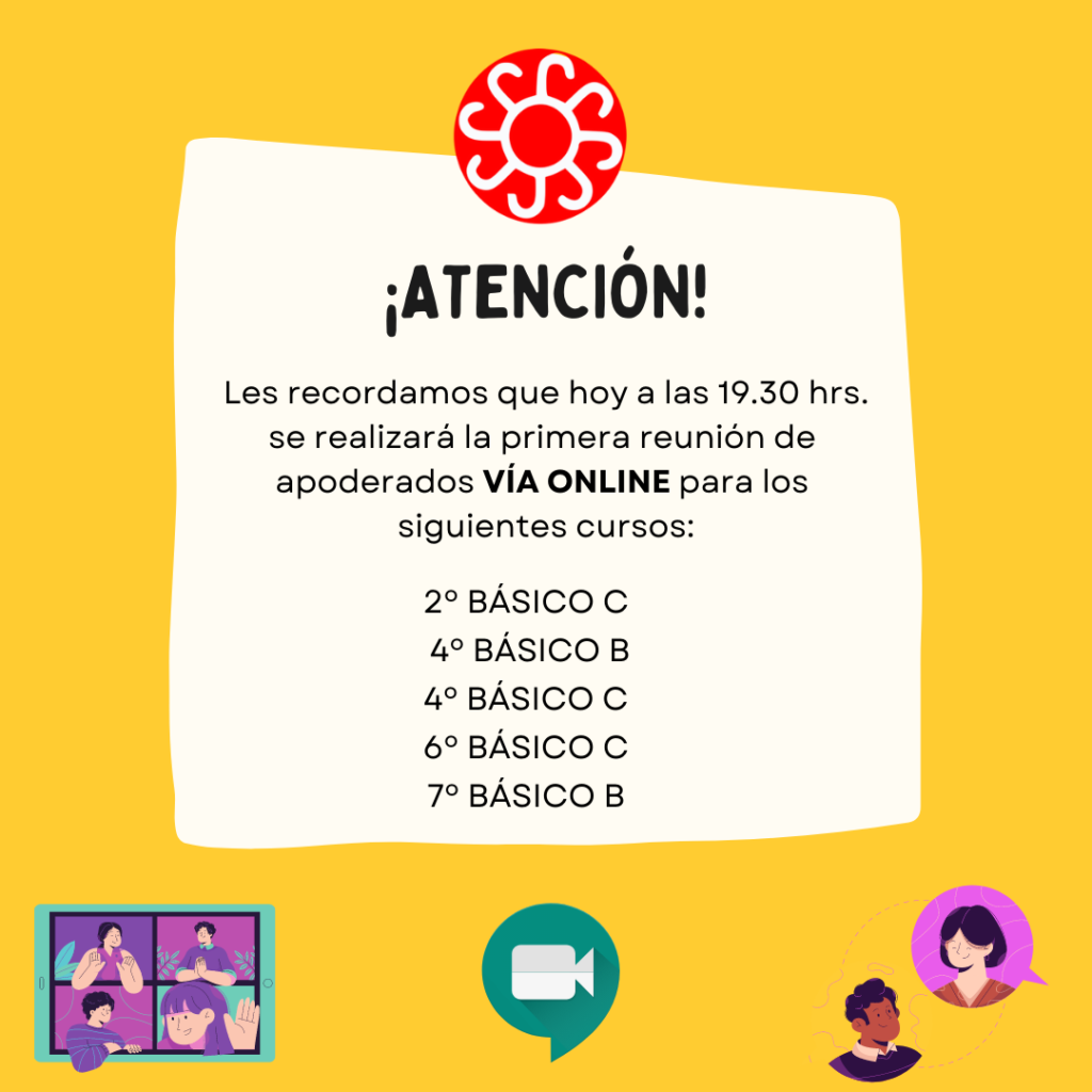 Les recordamos los cursos que hoy jueves 24 de marzo tendrán su primera reunión de apoderados ONLINE.