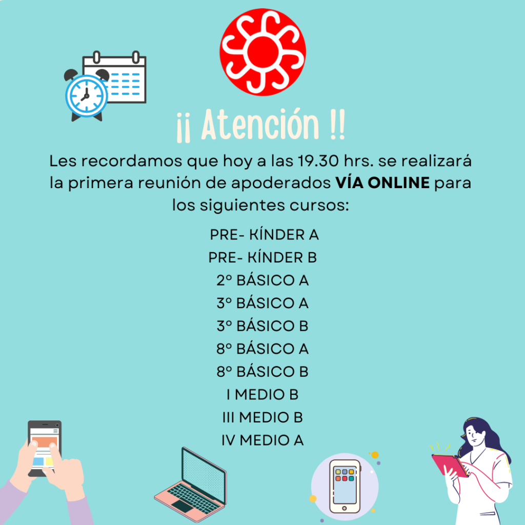 📌 Les informamos los cursos que hoy miércoles tendrán su primera reunión de apoderados ONLINE.📣