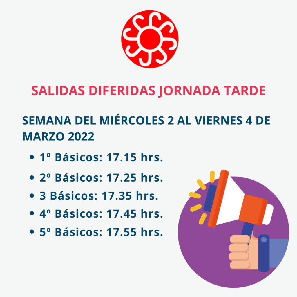 Les indicamos los horarios de salida solamente para la jornada de la tarde de nuestra institución.